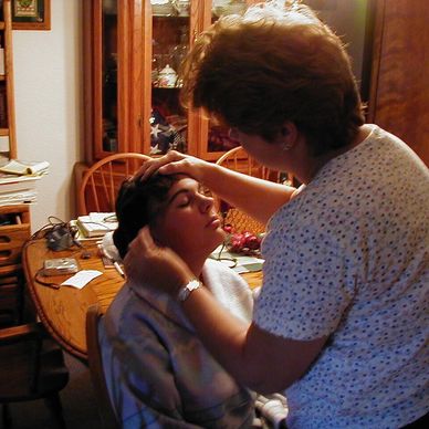 Deb has always taken care of the family's hair-styling needs. Here it's Nicki's turn