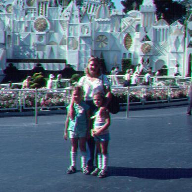 Deb with Christy & Cathy at Disneyland. Small World in background