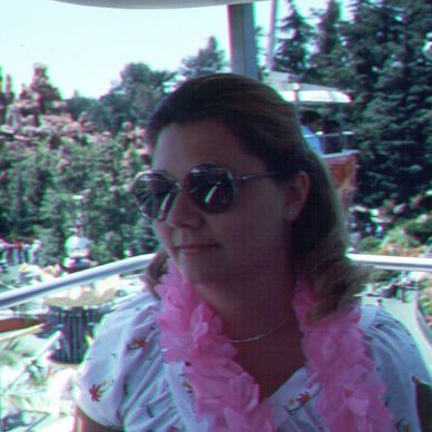 One of my favorite pictures of Debbie on the Sky-Ride at Disneyland. Unfortunately the ride no longer exist