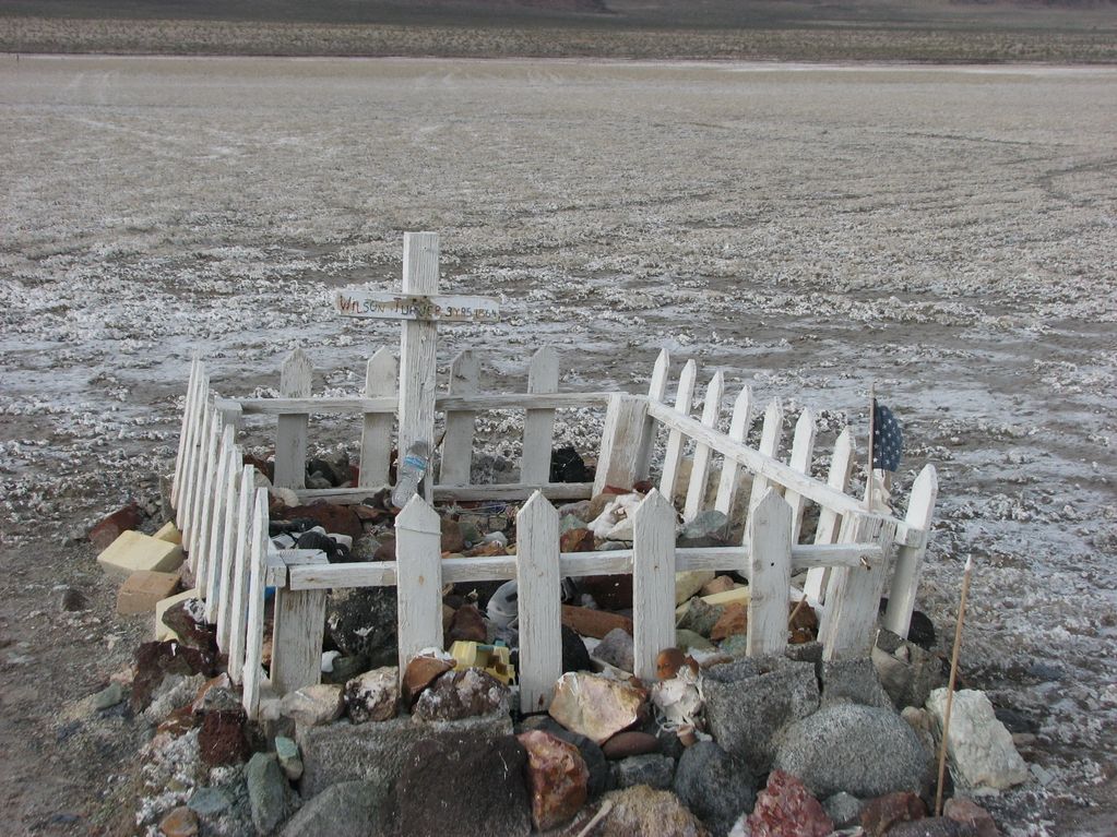 The LeBeau Gravesite - There are many stories of this gravesite of the three small children, all sisters, who died of diphtheria in 1865. (Jennie, age 9, Louise, age 6, and Emma, age 3). Off-spring of pioneers heading west. These three were buried in the Fourmile Flat, an unforgiving alkali plain, near Sand Mountain, west of Dixie Valley. Turns out, the grave has been rebuilt several times but p